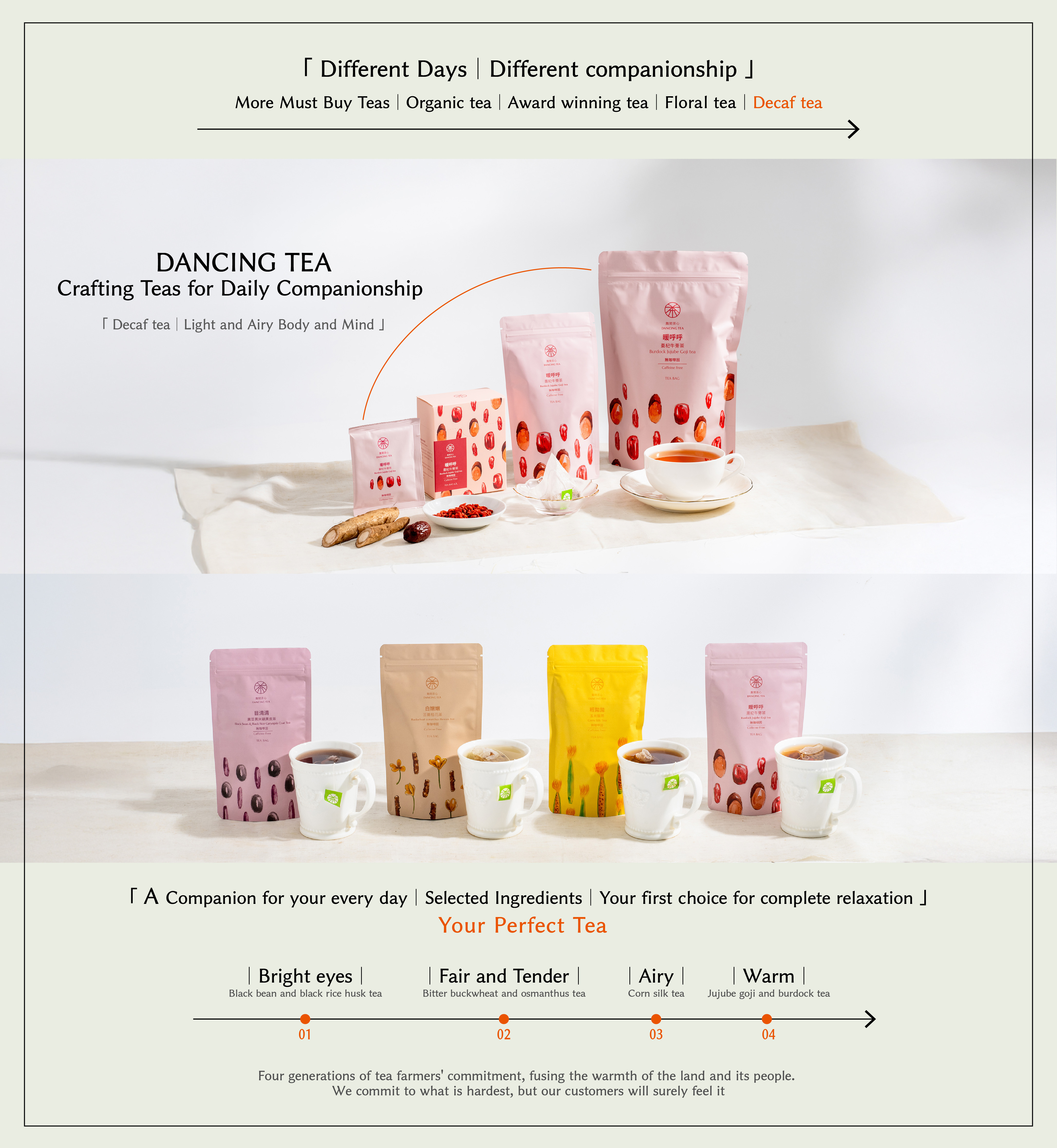A caffeine-free blend of carefully selected burdock, goji berries, and red dates in golden proportions, offering a naturally sweet and smooth taste. Enjoy hot or cold.